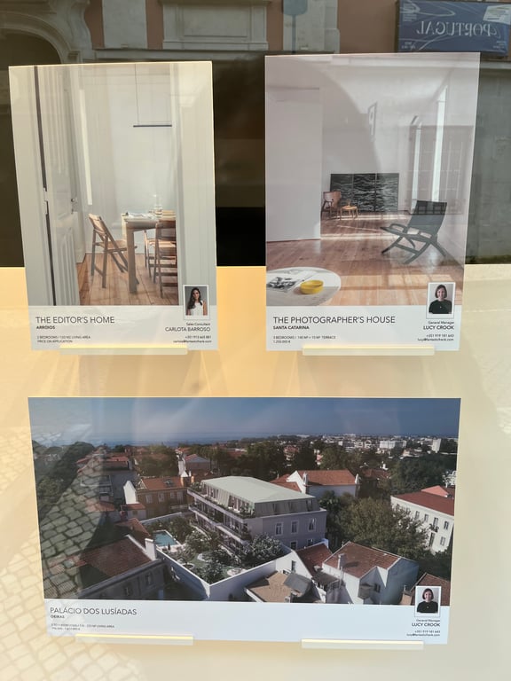 我自己是个游客,甚至呆了几天后也萌生了想要在此久居的想法。在好友群里感叹,朋友马上指出,有D7 visa, 长居不是梦。这一切,对当地习惯了8欧元就可以连汤带主食带甜点在小餐馆(tasca,讲吃的那篇会详说)午餐、人均GDP2万美元不到的葡萄牙普通人,显然会带来冲击。走在路上看到许多针对外侨的广告,有些简直令人哭笑不得。比如下图上方两则广告,房间很美,但为了吸引买家居然还起了”摄影师的房子”、“编辑的家”这样标榜文艺生活的名字。